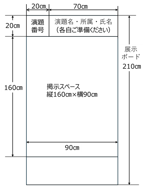 - 上部に「演題名・所属・演者名」(横70cm × 縦20cm)を貼付